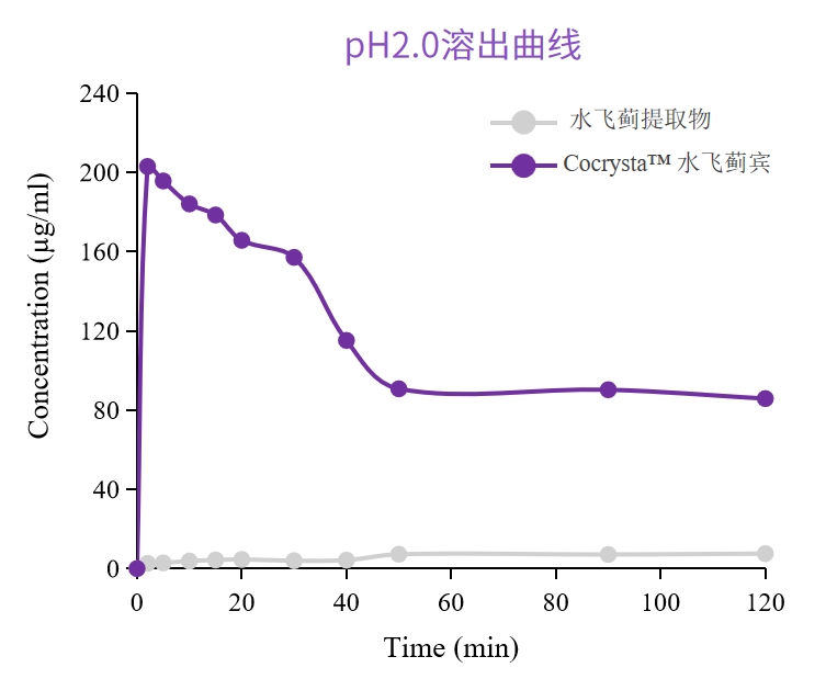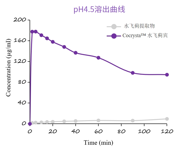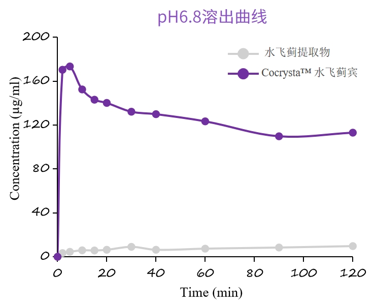 在不(bù)同pH值緩沖溶液中,研究人(rén)員(yuán)對(duì)普通(tōng)水(shuǐ)飛≥(fēi)薊提取物(wù)和(hé)水(shuǐ)飛(fēi)薊賓共晶的(de)溶解特性進行(xíng)了(le)系統評估。結果顯示,水(shuǐ)飛(fēi)薊賓共晶≥在各pH條件(jiàn)下(xià)溶解性能(néng)顯著提升。在pH為(wèi)2.0的(de)溶液中,其表觀溶解度是(shì)普通(tōng)水(shuǐ)飛(fēi)薊提取物(wù)的(de)77倍;pH為(wαèi)4.5時(shí),達100倍;pH為(wèi)6.8時(shí),亦高(gāo)達50倍。這(zhè)表明(míng),水(shuǐ)飛(fēi)薊賓共晶在不(bù)同酸堿環境下(xià),尤其在接近(jìn)人(rén)體(tǐ)胃部酸性環境(pH約為(wèi)2.0)中,能(néng)更迅速、充分(fēn)地(dì)溶解[1]。