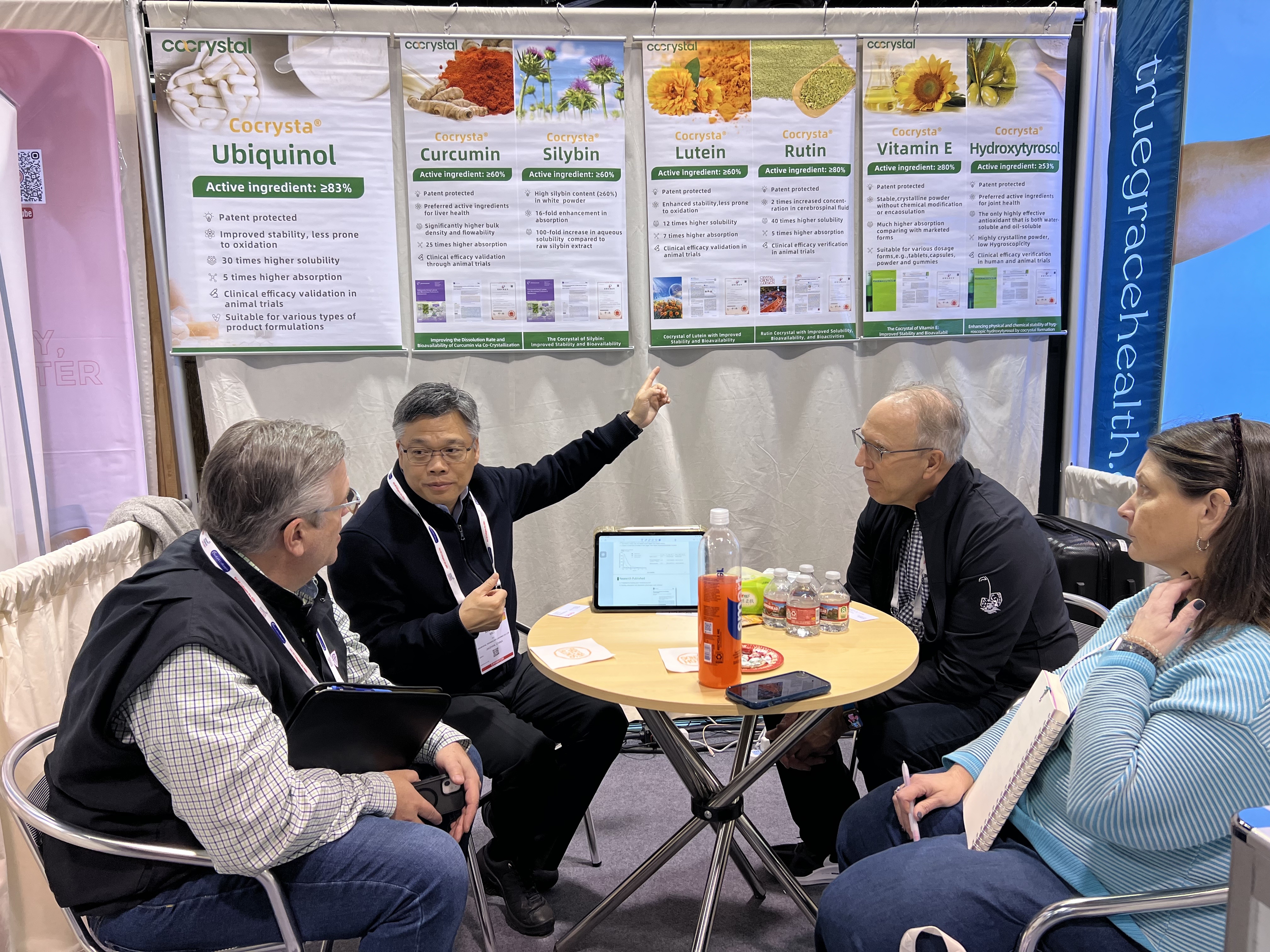 在本次博覽會(huì)上(shàng),共晶科(kē)技(jì)的(de)展位前來(lái)咨詢和(hé)交流的(de)訪£客絡繹不(bù)絕。公司展示的(de)一(yī)系列共晶産品備受關注,如(rú)Ubiquinol(還(hái)原型輔酶Q10共晶)、Lutein(葉黃(huáng)素共晶 )、Curcumin(姜黃(huáng)素共晶)、Hydroxytyrosol(羟基酪醇共晶)、Vitamin E(維生(shēng)素E共晶)、Rutin(蘆丁共晶&)以及Silybin(水(shuǐ)飛(fēi)薊賓共晶)。這(zhè)些(xiē)産品覆蓋營養保健、食品強化(huà)等多(duō)個(gè)關鍵領域,分(fēn)别在提升生(shēng)物(wù)利用(yòng↑)度、改善穩定性與溶解性、增強抗氧化(huà)性等方面獨具優勢,解決了(le)原有(yǒu)成分(fēn)吸收差、難添加等應用(yòng)痛點,彰顯出共晶科(kē)技(jì)在食品配料及天然β原料研發與生(shēng)産領域的(de)深厚專業(yè)功底。吸引了(le)衆多(duō)業(yè)內(nèi)人(rén)士駐足探討(©tǎo)合作(zuò)可(kě)能(néng)。無論是(shì)品牌配料、食品原料領域的(de)從(cóng)業(yè)者,還(hái)是(shì)技(jì)術(shù)及制(zhì)造業(yè)服務的(de)相(xiàng)關人(rén)員(yuán),都(dōu)對(duì)共晶科(kē)技(jì)的(de)産品表現(xiàn)出濃厚興趣。