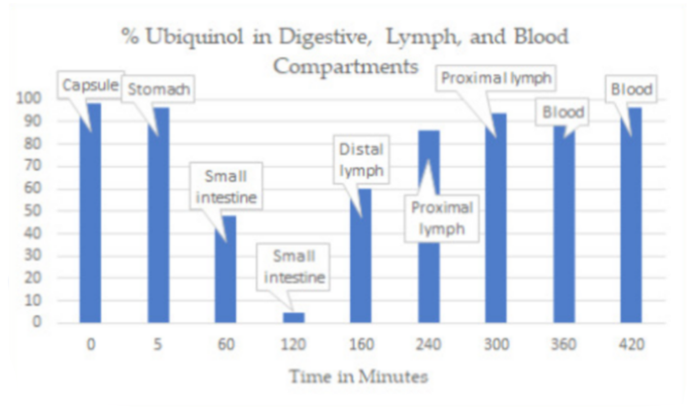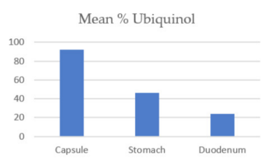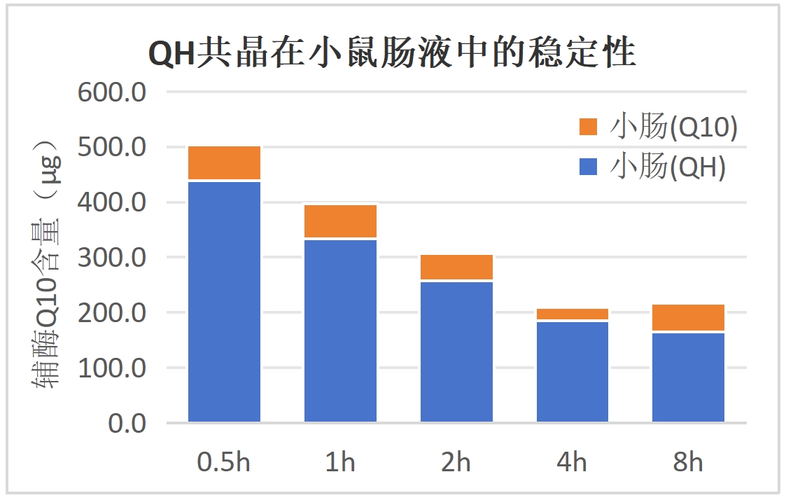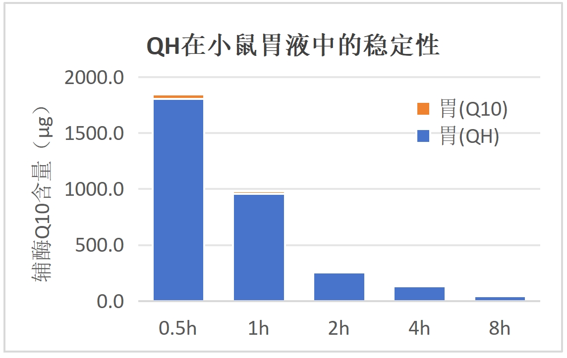 在以小(xiǎo)鼠為(wèi)動物(wù)模型的(de)研究中,Crystal QH給藥後,在不(bù)同時(shí)間(jiān)點測定小(xiǎo)鼠胃、小(xiǎo)腸中的(de)還(hái)原型輔酶Q10和(hé)氧化(huà)型輔酶Q10含量,實驗結果顯示:在胃中,任何時(shí)間(jiān)點均主要(yào)以還(hái)原型形式存在;在小(xiǎo)腸中,除小(xiǎo)部分(fēn)被氧化(huà)以外(wài),0-8小(xiǎo)時(shí)內(nèi)80%以上(shàng)仍然以還(hái)原型形式存在。研究表明(míng),Crystal QH攝入後在胃腸道(dào)中均能(néng)穩定存在,并不(bù)會(huì)轉化(huà)為(wèi)氧化(huà)型輔酶Q10,從(cóng)而能(néng)夠被人(rén)體(tǐ)直接吸收利用(yòng)。