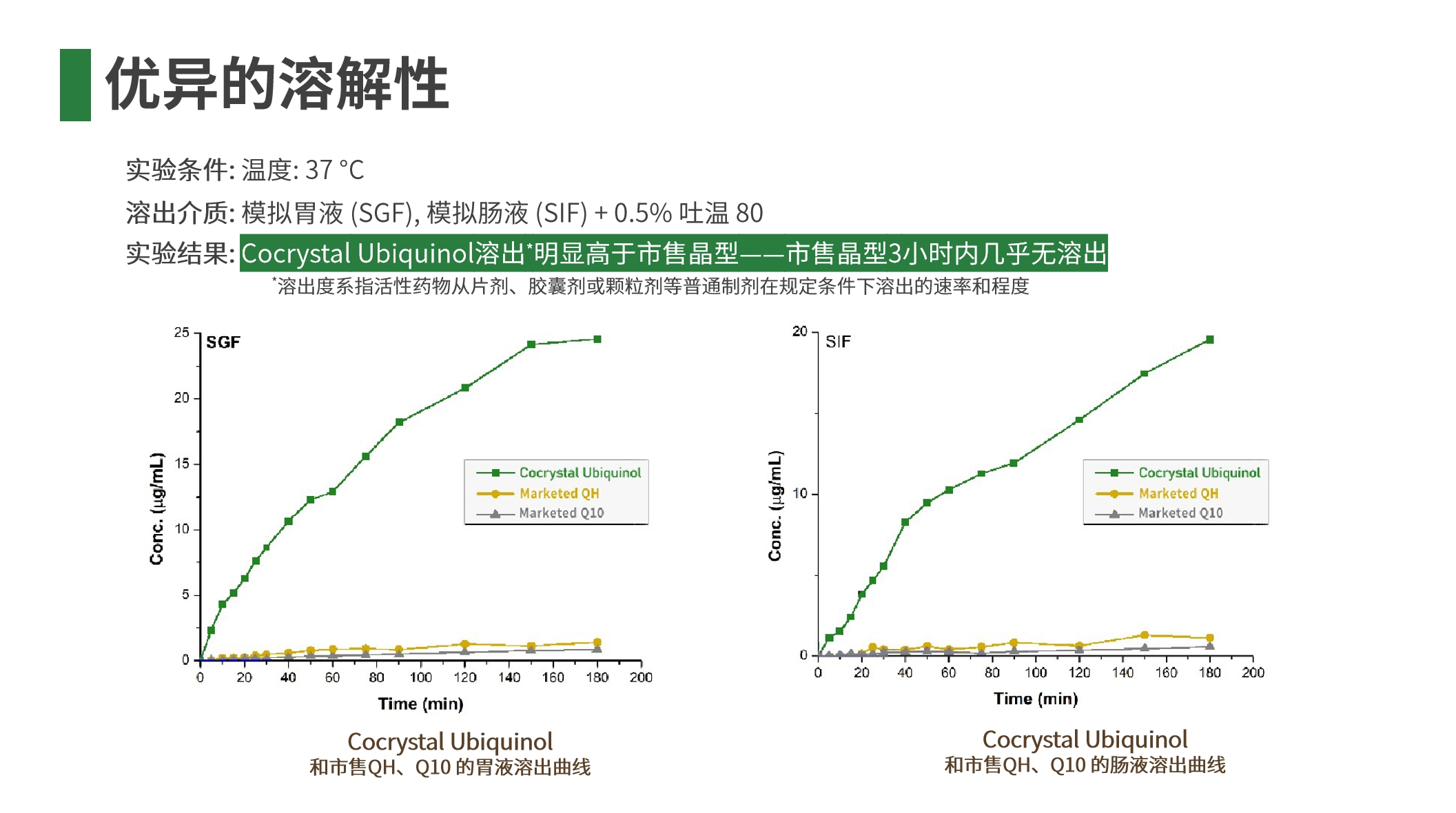 讓其在體(tǐ)外(wài)模拟胃腸溶液3小(xiǎo)時(shí)後依然能(néng)被檢測出還(hái)原型輔酶Q10。保證其還(hái)原型輔酶Q10的(de)形式被吸收,增加生(shēng)物(wù)利用(yòng)度。