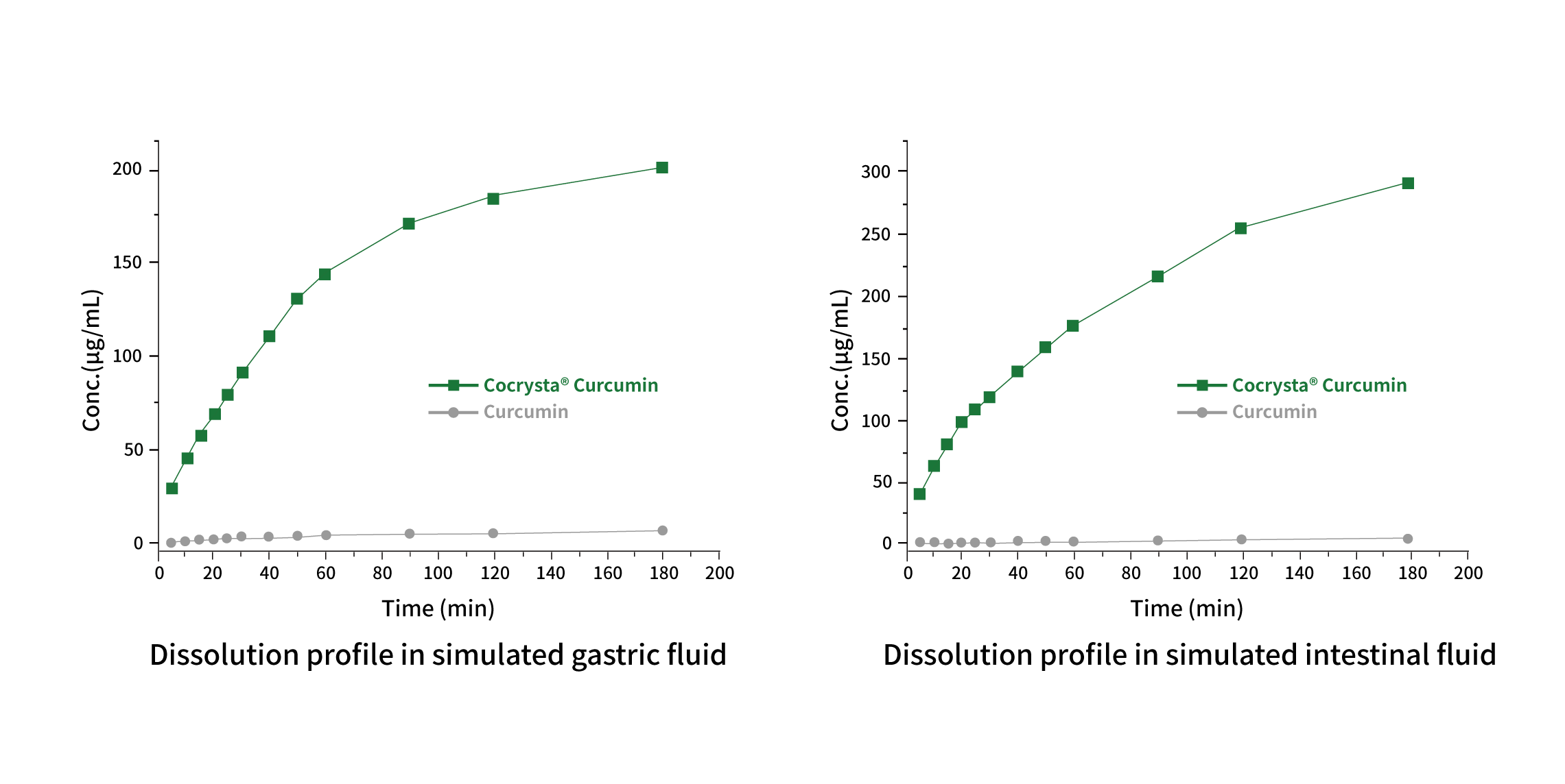 Unlock the full potential of the ingredient with Cocrysta® Curcumin. Powered by cutting-edge cocrystallization technology, our innova←tive formula not only significantly improves solubility but also boasts a remark✔able 60 times higher bioavailability.