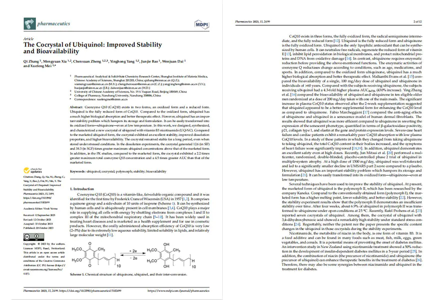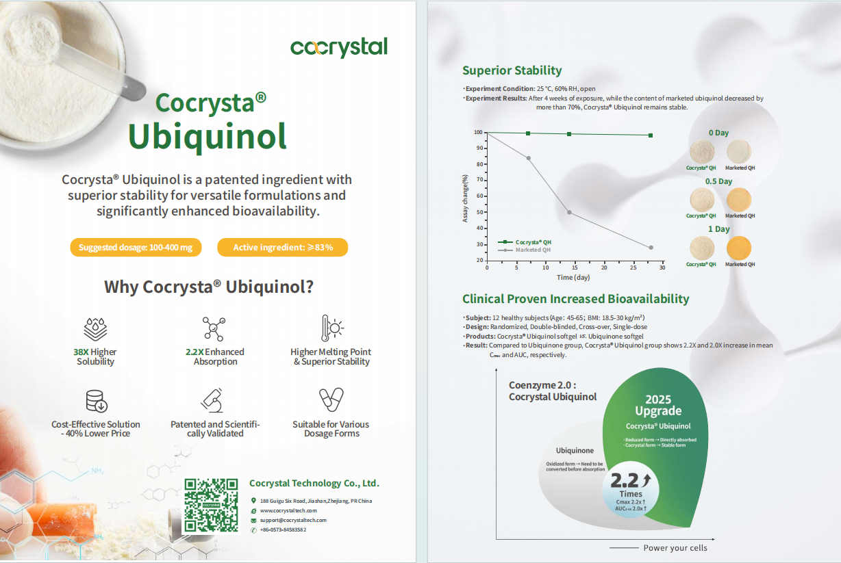 Recommended Dosage: 120 mg/day Cocrysta® Ubiquinol(equivalent to 100 mg Ubiquinol)