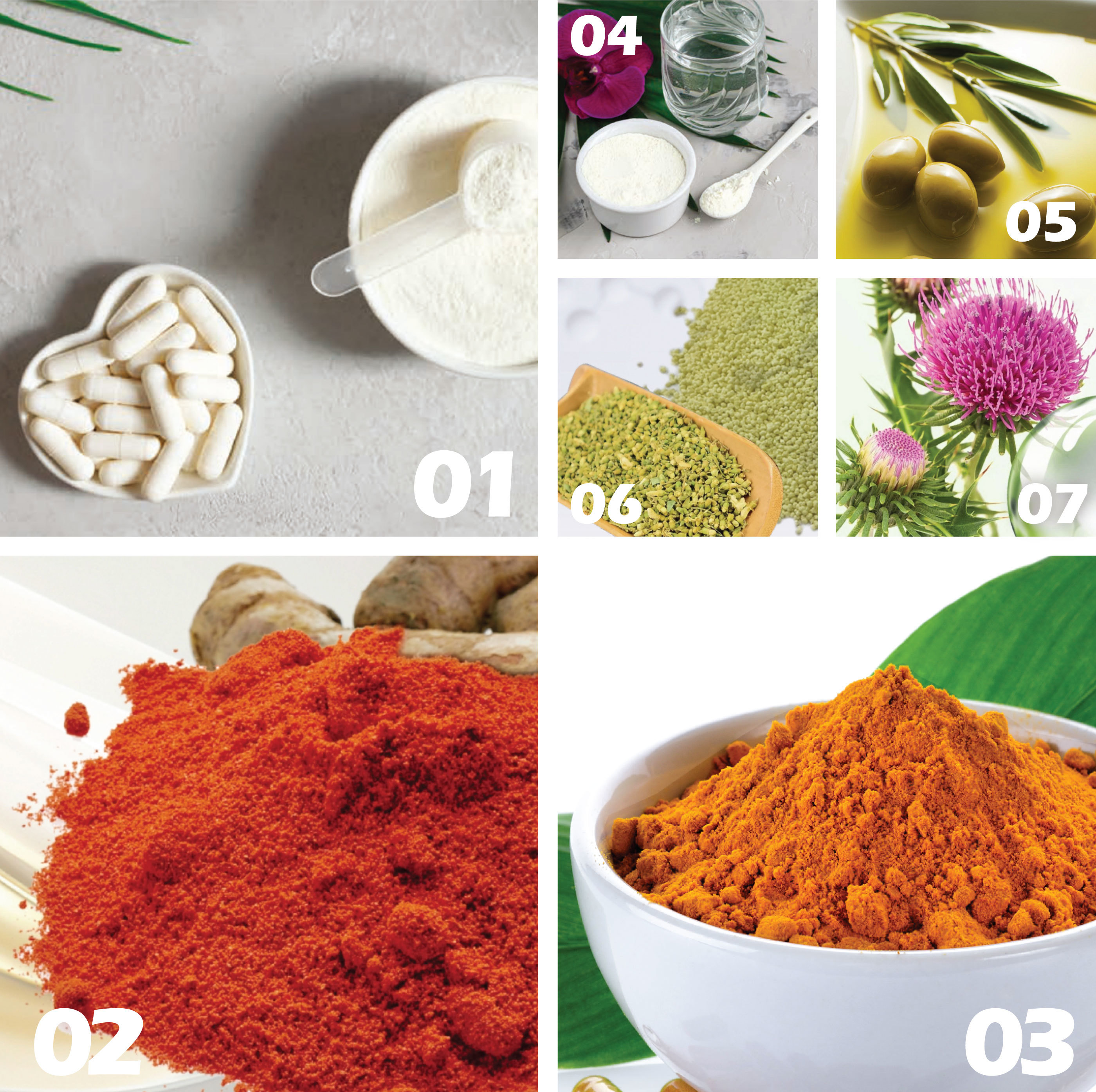 2. 姜黃(huáng)素共晶:吸收率提高(gāo)25倍,溶出更快(kuài),護肝效果更優,特别适合在肝髒養護類功能(n¥éng)性食品中添加。