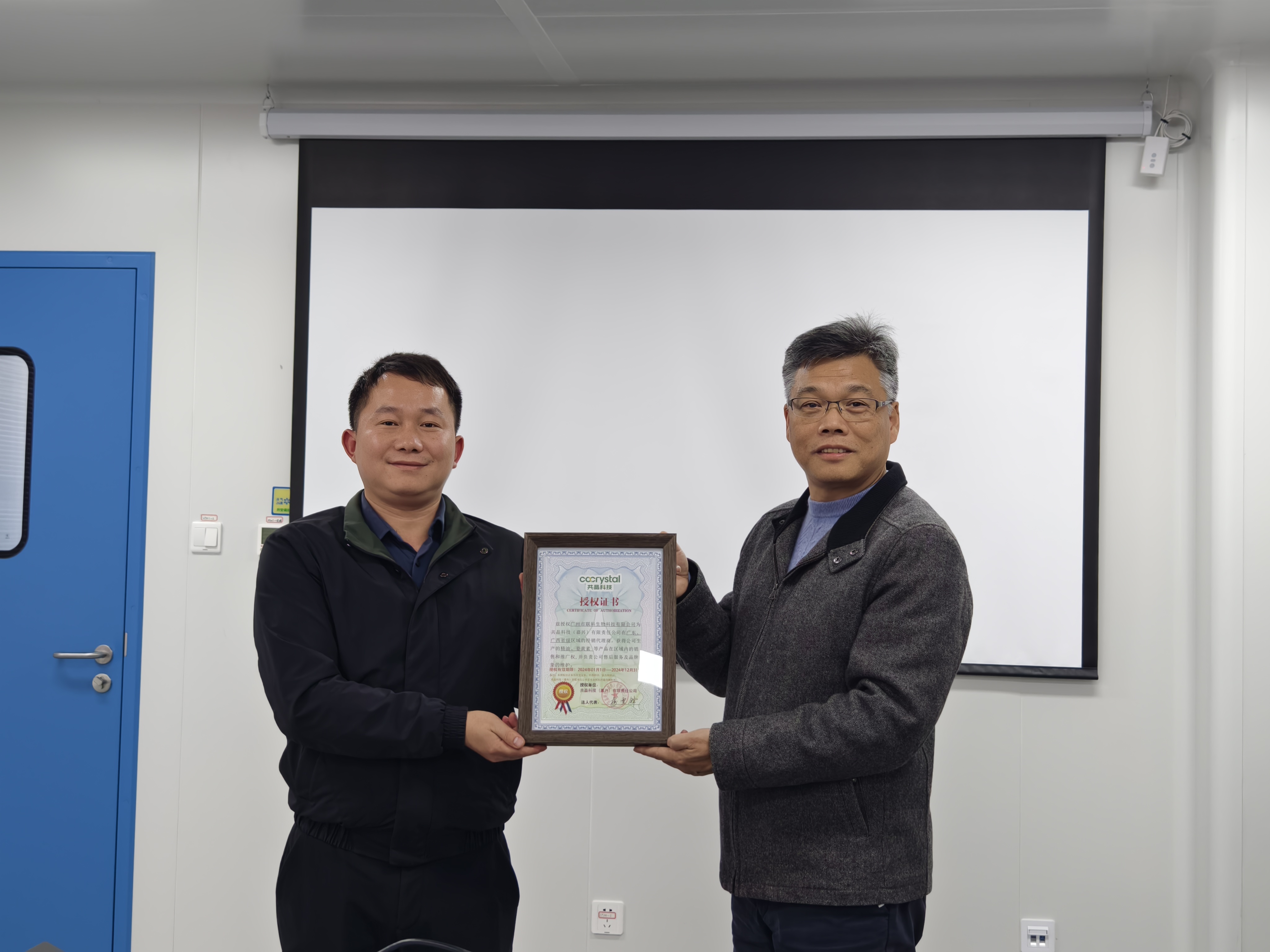19日(rì)下(xià)午,在曹俊明(míng)研究員(yuán)的(de)見(jiàn)證下(xià),共晶科(kē)技(jì)董事(shì)長(cháng)梅雪(xuě)鋒教授為(wèi)廣州聯科(kē)進行(xíng)了(le)“經銷授權”儀式。此次“授權”将加強雙方業(yè)務的(de)進一(yī)步深入合作(zuò),未來(lái)也(yě)将繼續打造雙赢、可(kě)持續發展的(de)戰略合作(zuò)夥伴,共同書(shū)寫新的(de)輝煌篇章(zhāng)。