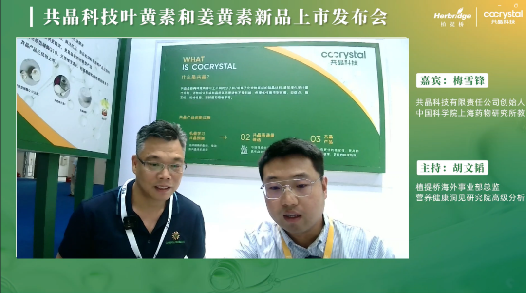 2024年(nián)6月(yuè)26日(rì),共晶科(kē)技(jì)在2024 FBIF食品展上(shàng)正式推出兩款新原料,分(αfēn)别是(shì)姜黃(huáng)素共晶和(hé)葉黃(huáng)素共晶,同時(shí)還(hái)在現(xiàn)場(chǎng)向觀衆展示其創新技(jì)術(shù)解決方案&mda'sh;—“共晶技(jì)術(shù)”,植提橋以直播的(de)形式對(duì)此次新品發布進行(xíng)全程直播。