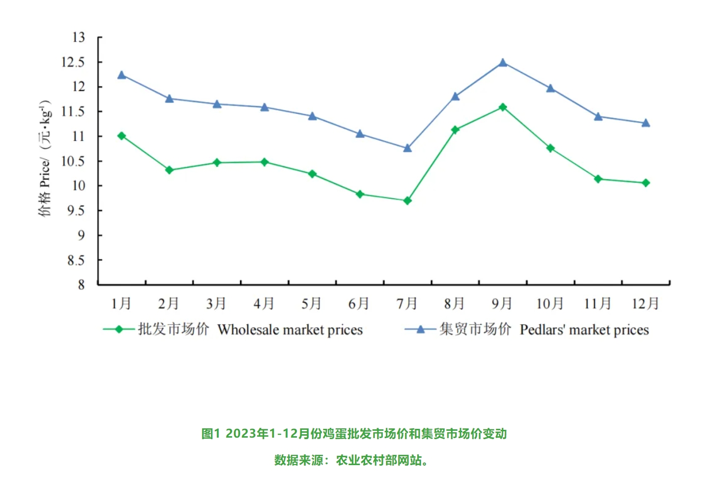 20世紀80-90年(nián)代,我國(guó)蛋雞産業(yè)進入爆發性增長(cháng),雞蛋産量成為(wèi)世界第一(yī),延續至今。2015年(nián)數(shù)據顯示,我國(guó)雞蛋産量将近(jìn)2900萬噸,約為(wèi)美(měi)國(g↔uó)的(de)4.5倍,印度的(de)6.5倍,約占世界總産量的(de)38%[1]。2023年(nián)我們雞蛋産量繼2020年(nián)以後,再創曆史新高(gāo),達到(dào)了(le)3028.55 萬噸[2]。以往雞蛋價格基本會(huì)遵循“一(yī)季度下(xià)跌、二季度穩中略漲、三季度上(shàng)漲、四季度下(xi©à)跌後趨穩”的(de)波動規律,但(dàn)2023年(nián)則呈現(xiàn)出“一(yī)季度∑先跌後企穩、二季度持續下(xià)跌、三季度上(shàng)漲、四季度下(xià)跌”的(de)波動趨勢α(圖1),2023年(nián)上(shàng)半年(nián)與往年(nián)規律有(yǒu)差異。雖然2023年(nián) 雞蛋價格高(gāo)位回調,但(dàn)總體(tǐ)不(bù)及 2022 年(nián)水(shuǐ)平;2023年(nián)≈蛋雞養殖全年(nián)保持盈利,但(dàn)盈利水(shuǐ)平不(bù)及 2022 年(nián)[2]。