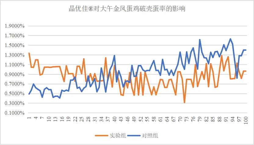 圖2 飼料添加晶優佳®對(duì)大(dà)午金(jīn)鳳蛋雞破殼蛋率的(de)影(yǐng)響