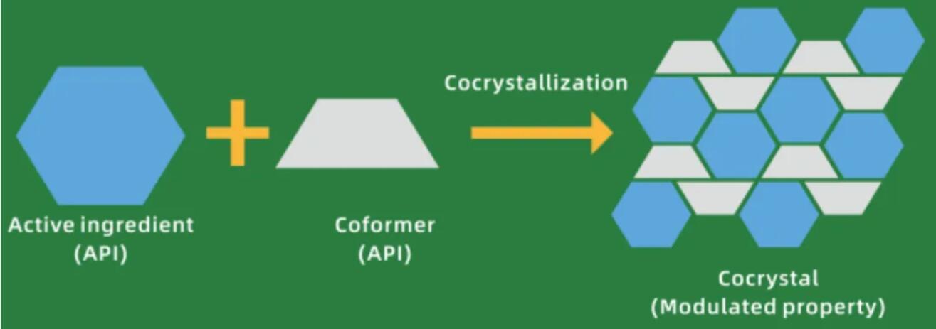 共晶是(shì)由同一(yī)晶格中的(de)兩個(gè)或兩個(gè)以上(shàn÷g)不(bù)同分(fēn)子(zǐ)(屬于最底層的(de)分(fēn)子(zǐ)水(shuǐ)平操作(zuò)技(jì)術(shù))——通(tōng)常為(wèi)活性藥物(wù)成分(fēn)(API)和(hé)共晶配體(tǐ)(CCF)——通(tōng)過氫鍵、範德華力等非共價鍵連接組成的(de)晶體(tǐ)物(wù)質[11]。可(kě)以在不(bù)改變藥物(wù)分(fēn)子(zǐ)結構(無化(huà)學變化(huà))的(de)同時(∞shí),改善藥物(wù)的(de)理(lǐ)化(huà)性質,提高(gāo)臨床藥效,特别是(shì)在增加難溶藥物(wù)溶解度、生(s hēng)物(wù)利用(yòng)度方面具有(yǒu)明(míng)顯的(de)優勢。