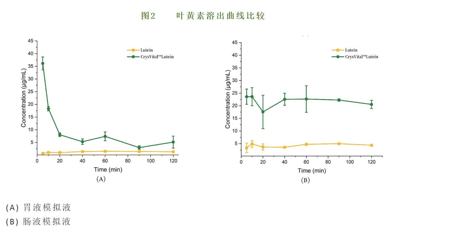 共晶科(kē)技(jì)應用(yòng)藥物(wù)共晶技(jì)術(shù)獲得(de)的(de)專利産品葉黃(huáng)素共晶:Cry÷sVital TM Lutein,穩定性增強(如(rú)圖1),溶解度提高(gāo)(如(rú)圖2),生(shēng)物(wù)利用(yòng)度增加(如(rú)圖3)。與市(§shì)售葉黃(huáng)素産品相(xiàng)比,CrysVital TM Lutein 在體(tǐ)內(nèi)的(de)最大(dà)血漿濃度提升了(le)約4倍(表1所示)[14]。CrysVital TM Lutein,拓寬了(le)葉黃(huáng)素産品的(de)應用(yòng)途徑。